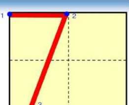 四、“4”從上線的中間起筆,向左斜線到下格,碰左線再折右碰線,如下圖所示: