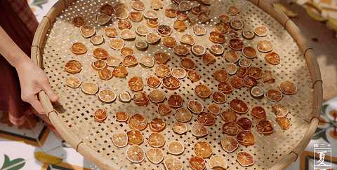 3、當(dāng)檸檬被烘得很干燥時(shí),果肉成半透明薄膜狀即可。