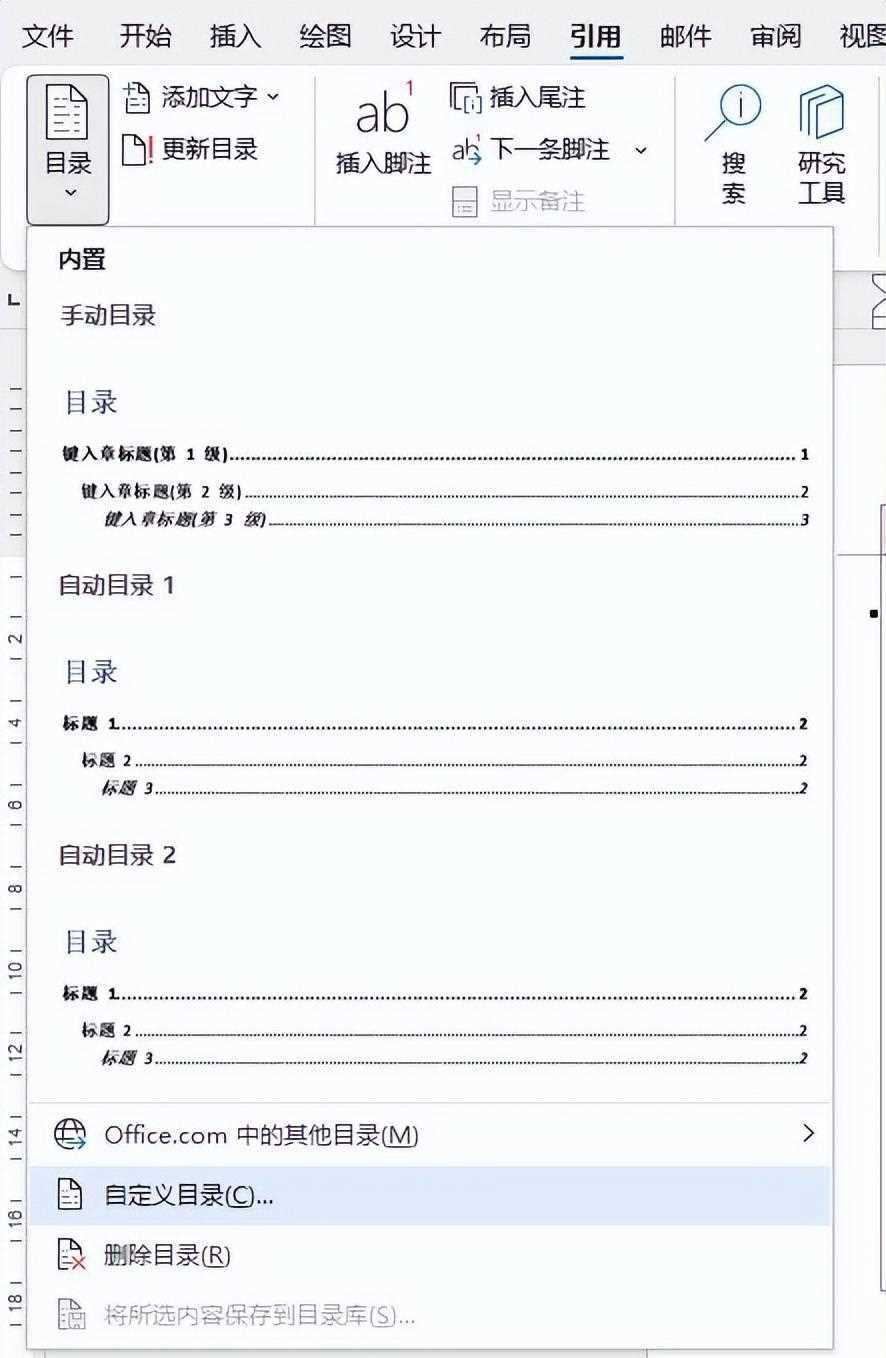 如圖4所示,word自動目錄默認包含以下樣式,如對目錄格式無特殊要求,直接使用即可;如發(fā)現(xiàn)格式不符合需求,可使用“自定義目錄”功能,進行格式的定制。