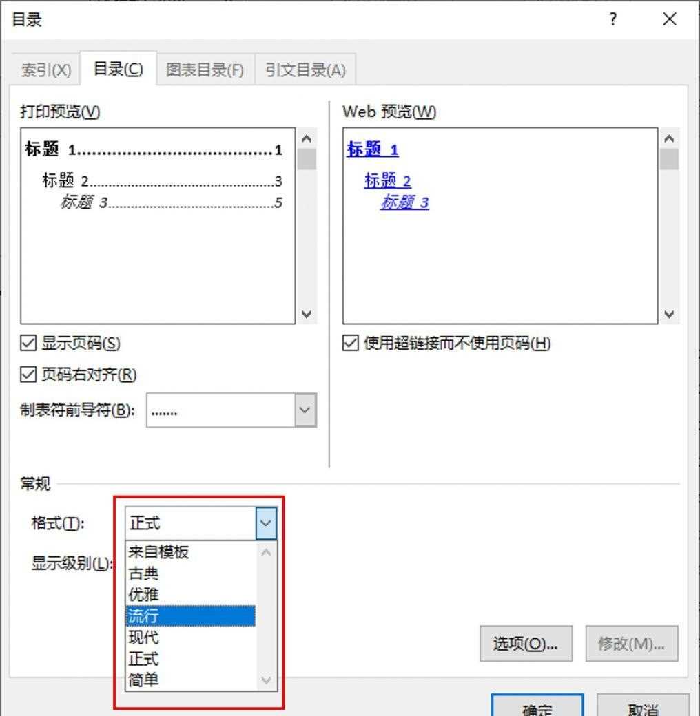 Microsoft 365 word內(nèi)置了多種目錄格式,如圖5所示,可通過常規(guī)格式設(shè)置,選擇合適的模板,如古典、優(yōu)雅、流行等。