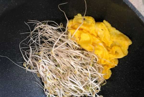 用料:年糕1條、豆芽50克、雞蛋1個、生抽2勺、蠔油1勺。