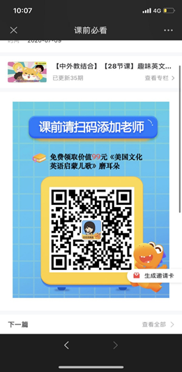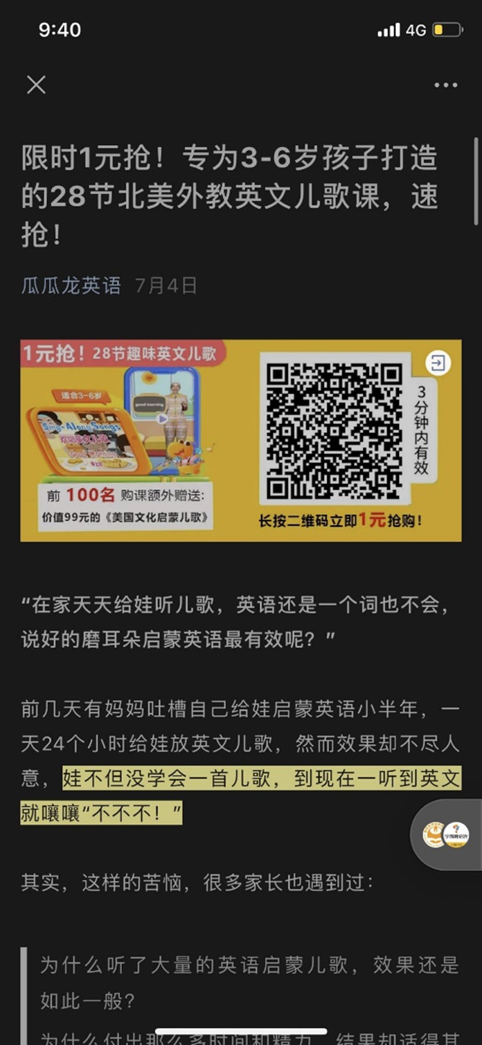2)活動(dòng)最初設(shè)計(jì)的前100名購課額外贈(zèng)送價(jià)值99元的《美國文化啟蒙兒歌》,刺激家長盡快參加。家長也無法知道知道自己是第幾個(gè),但是的確在用戶心理上可以促進(jìn)由于的家長盡快下單。