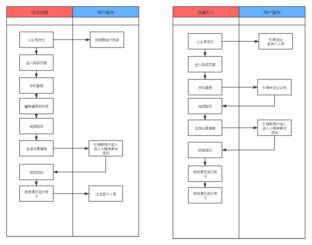 3)引流性產(chǎn)品的目的就是引流所以在活動(dòng)流程設(shè)計(jì)中一定要設(shè)計(jì)流量承接的地方,并且最好在活動(dòng)之初,活動(dòng)中,活動(dòng)后都有,避免用戶在某個(gè)環(huán)節(jié)流失掉。