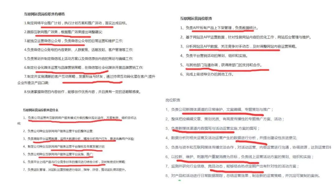 但實(shí)際上你會發(fā)現(xiàn)不同的公司還會有更多不同的需求;下面是我在網(wǎng)上招聘網(wǎng)站上面隨手搜索截屏的圖(大家也可以去看看),認(rèn)真觀察以下的內(nèi)容信息,大概我們就能看出來運(yùn)營到底是做什么及需要哪些能力,還有存在的意義!