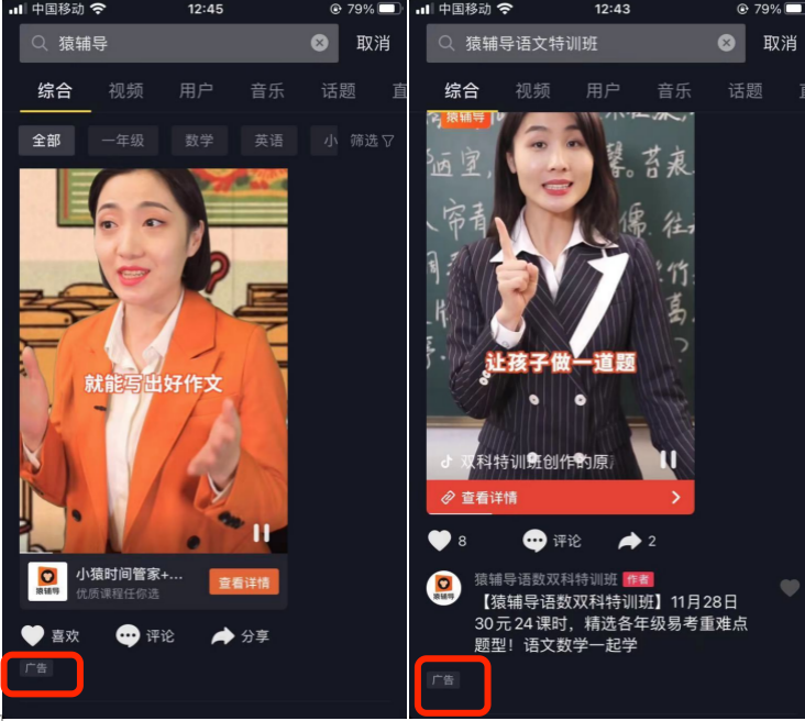 總結:快速發(fā)展階段,猿輔導在各大熱門平臺都進行了廣告投放,快速曝光,進行搶占流量。