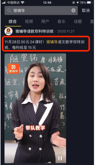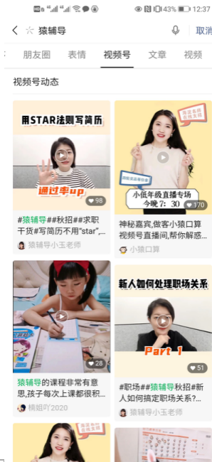 微信視頻號:最近微信視頻號的興起,猿輔導通過各種賬號來進行內(nèi)容推廣。在這里也能看出是重點發(fā)力點。