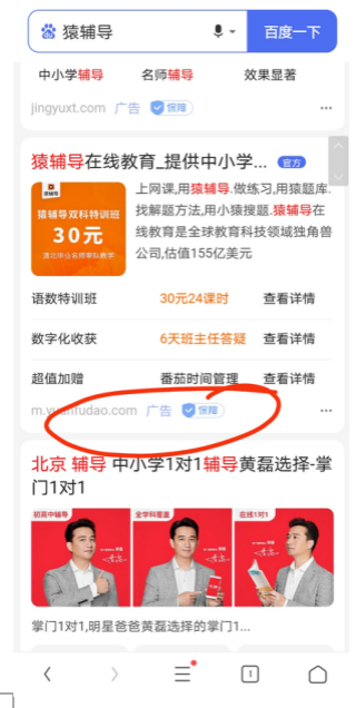 以百度搜索為例,猿輔導也在投了搜索廣告