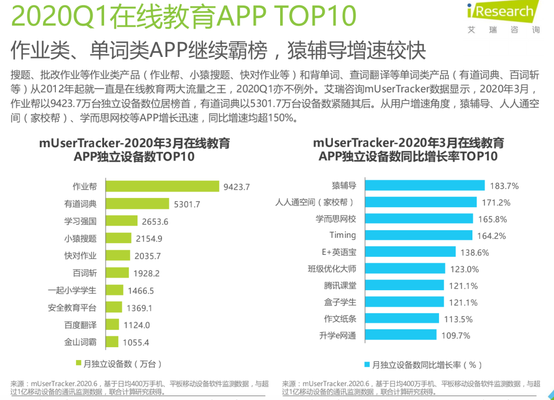 通過艾瑞數(shù)據(jù)來看,猿輔導增速較快,但競品多多,且緊跟其后。說明k12教育賽道流量增速。
