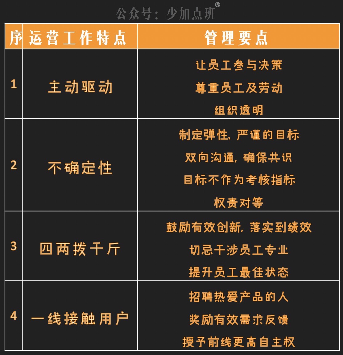 目前我們談完了管理者的個人(影響力)管理、目標管理(部分)這兩個優(yōu)秀團隊管理的前提條件。接著我們具體要談基于運營工作的這種獨特性,如何最大程度的激活團隊潛力。