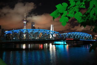 架設在上海蘇州河與黃浦江匯合處的外白渡橋,為鋼架結構下承式橋,是上海市區(qū)最大的一座鋼鐵橋。橋有二孔,共長106.7米,車行道寬11.2米,兩側人行道各寬3.6米,經(jīng)多次改造,現(xiàn)載重為20噸。透過外白渡橋沉重的鋼架結構,可以看到東方明珠的炫麗燈光,這座橋曾經(jīng)是上海標志之一。