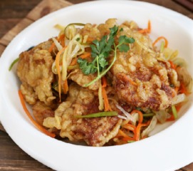 記得,肉片要一片片地掛糊,下鍋,下去后要馬上打散,否則會(huì)沾在一起。