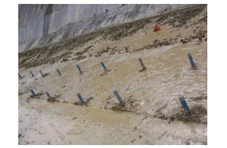 7、由于裸露式防護(hù)的邊波未完全封閉,巖石表面風(fēng)化可能會(huì)存在小量巖崩,因此,條文規(guī)定采用拉伸強(qiáng)度較高的土工格柵。埋藏式由于有水泥砂漿封閉,可以根據(jù)技術(shù)經(jīng)濟(jì)比較選用土工網(wǎng)或土工格柵。