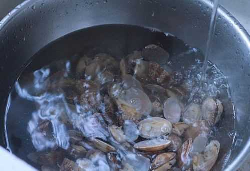 等鹽粒完全溶解后,將蛤蠣倒入。水要沒過蛤蠣。然后再水里加入幾滴食用油,用筷子攪開。半小時后蛤 蠣就會伸出舌頭四處噴水了,大約2個小時后,蛤蜊體內(nèi)的泥沙就吐得很干凈了,可以放心的用來烹制美食啦。當(dāng)然,如果有時間,泡的時間越長效果越好,但不可超過一天,否則蛤蜊會瘦會死。