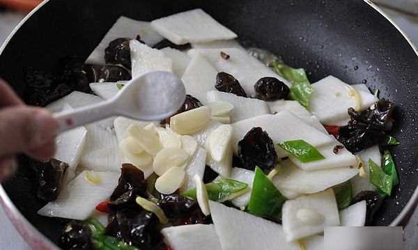 輔料:油適量、鹽適量、生姜適量、大蒜適量、青椒適量、花椒適量、白醋適量、紅尖椒適量、黑木耳適量。