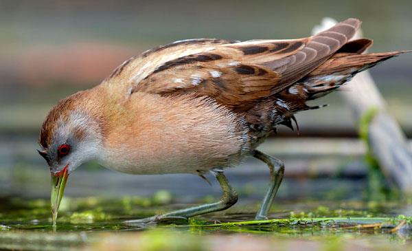 覓食時(shí)主要通過在水面游泳,啄食水面和植物上的昆蟲等,有時(shí)也潛水覓食。食性較雜,主要以小型水生動(dòng)物、飛蛾幼蟲、昆蟲、蜘蛛、蝸牛等動(dòng)物性食物為食,也吃植物的幼芽、果實(shí)和種子。