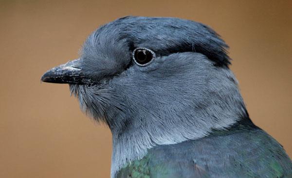 羽色灰藍,背部閃耀著金屬的綠色和紫色光芒,十分的美麗。它是鵑鴗科唯一物種,分類學(xué)上存在很大爭議,目前被列在佛法僧目下。因其形態(tài)習(xí)性極為特殊,很多學(xué)者建議將其獨立為鵑鴗目。