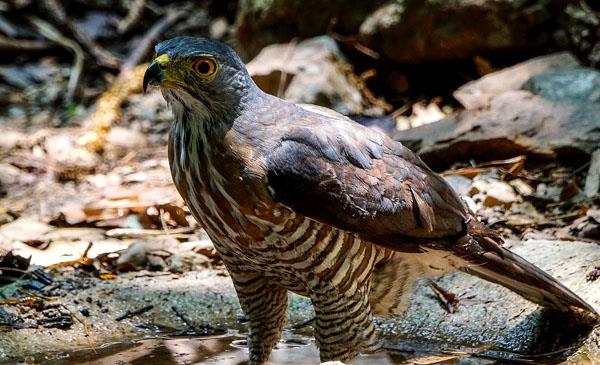 鳳頭鷹:別名鳳頭蒼鷹,為隼形目、鷹科、鷹屬鳥類,原產(chǎn)于亞洲南部,東南部,中國(西南地區(qū))、不丹、汶萊、柬埔寨、印度、印尼、老撾、馬來西亞、緬甸、尼泊爾、菲律賓、新加坡、斯里蘭卡、泰國、越南。野生于2000m以下的山地森林和山腳林緣地帶,也出現(xiàn)在竹林和小面積叢林地帶,偶爾也到山腳平原和村莊附近活動(dòng)。1824年明敏,共11個(gè)亞種。上喙邊端具弧形垂突,適于撕裂獵物吞食。基部具蠟?zāi)せ蝽殸钣稹?/p>