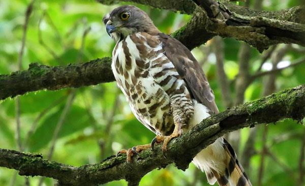 中型猛禽,屬留鳥。其性情機(jī)警,善于藏匿,常躲藏在樹葉叢中,有時(shí)也棲息于空曠處孤立的樹枝上。翅強(qiáng)健,翅寬圓而鈍,扇翅及翱翔飛行,扇翅節(jié)奏較隼科慢。叫聲較為沉寂,he-he-h的尖厲叫聲及拖長的吠聲。
