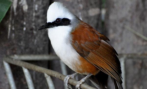雌雄羽色相似,整個(gè)頭、頭側(cè)、羽冠以及頦、喉和上胸白色。前額基部、眼先、眼周和耳羽黑色,形成一條寬闊的黑色貫眼紋,在白色頭部極為醒目。野生情況下,多在林下地上和灌叢中活動(dòng)和覓食。