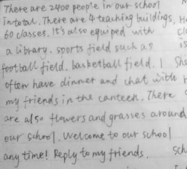 描寫(xiě)校園景色的英語(yǔ)短文My campus is the most unforgettable place in my whole life, miss my mother similar, I love you great of campus. My campus front door has me the name of mother school on the door with a southern exposure, in the sun flickering give out light.Again go toward in is a center road, the both sides contain many flowers, beauty pole!It is a toilet in the southeast.At southwest Cape of is a dining room.Agreeable center road s going toward is a teaching building ago.The five planets red flag flaunts aweather before the building in the teaching.The empress of the building is a dormitory.This is the layout of my campus. In this campus has been concerning my teacher.They are very kind.At I have difficult of time, they win difficult courage for me, I thank them very much。