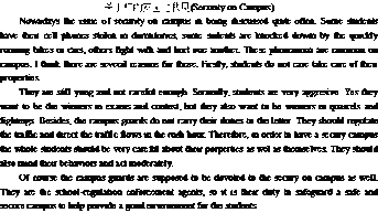 在我看來(lái),校園安全問(wèn)題會(huì)得到改善,只要努力在校園里。因此,高校應(yīng)該盡力使每個(gè)人在校園里的安全和健康