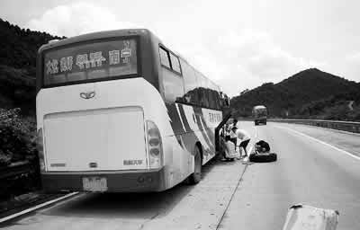 提示:在路邊修車,來往車輛隨時(shí)會對你造成危險(xiǎn)。