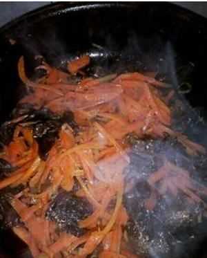 木耳很容易炒,紅蘿卜絲差不多熟時在放!