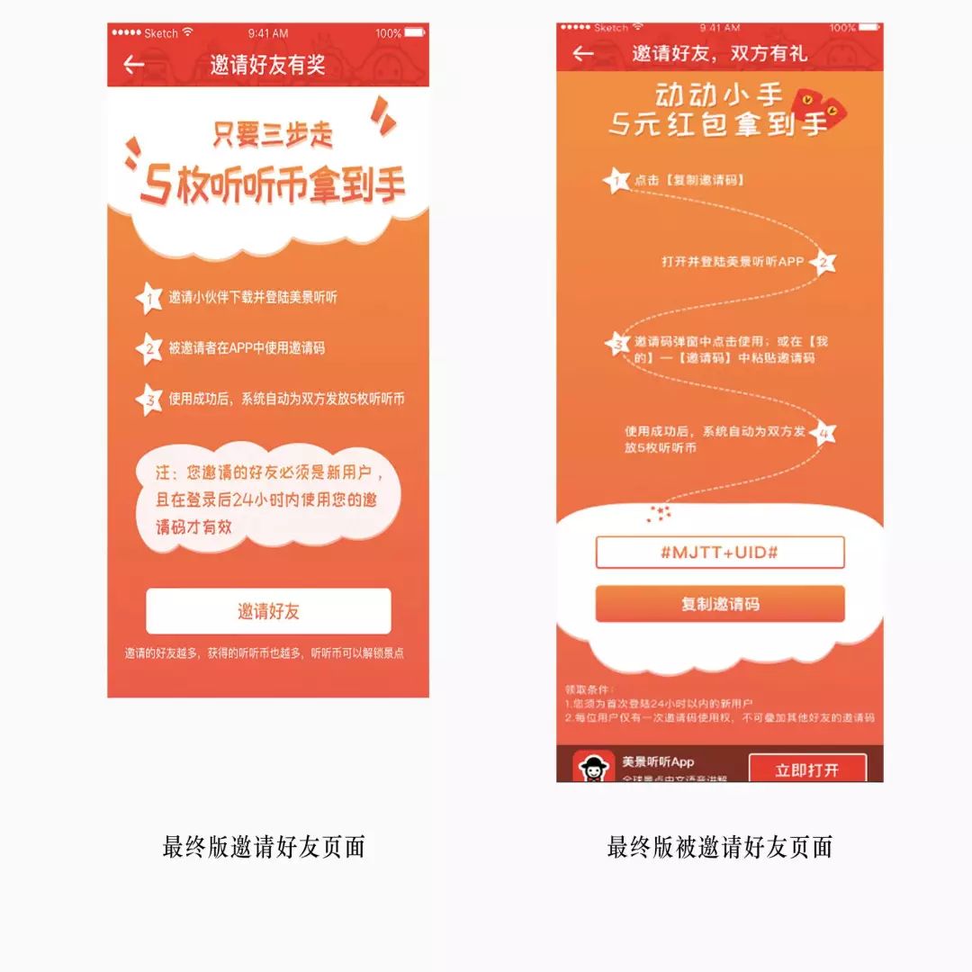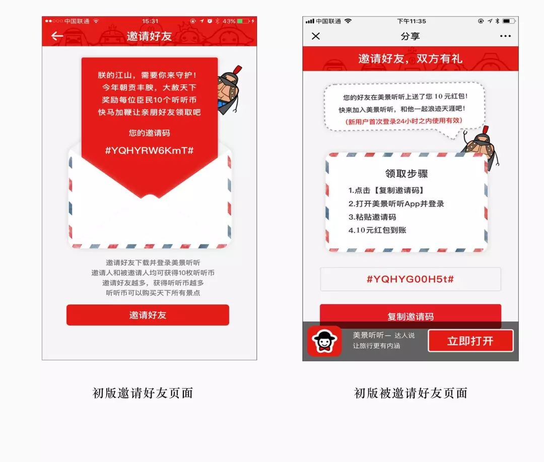 下面我們通過“美景聽聽”APP邀請(qǐng)好友功能的復(fù)盤,一起挖掘一下邀請(qǐng)好友還有哪些值得改良的地方。