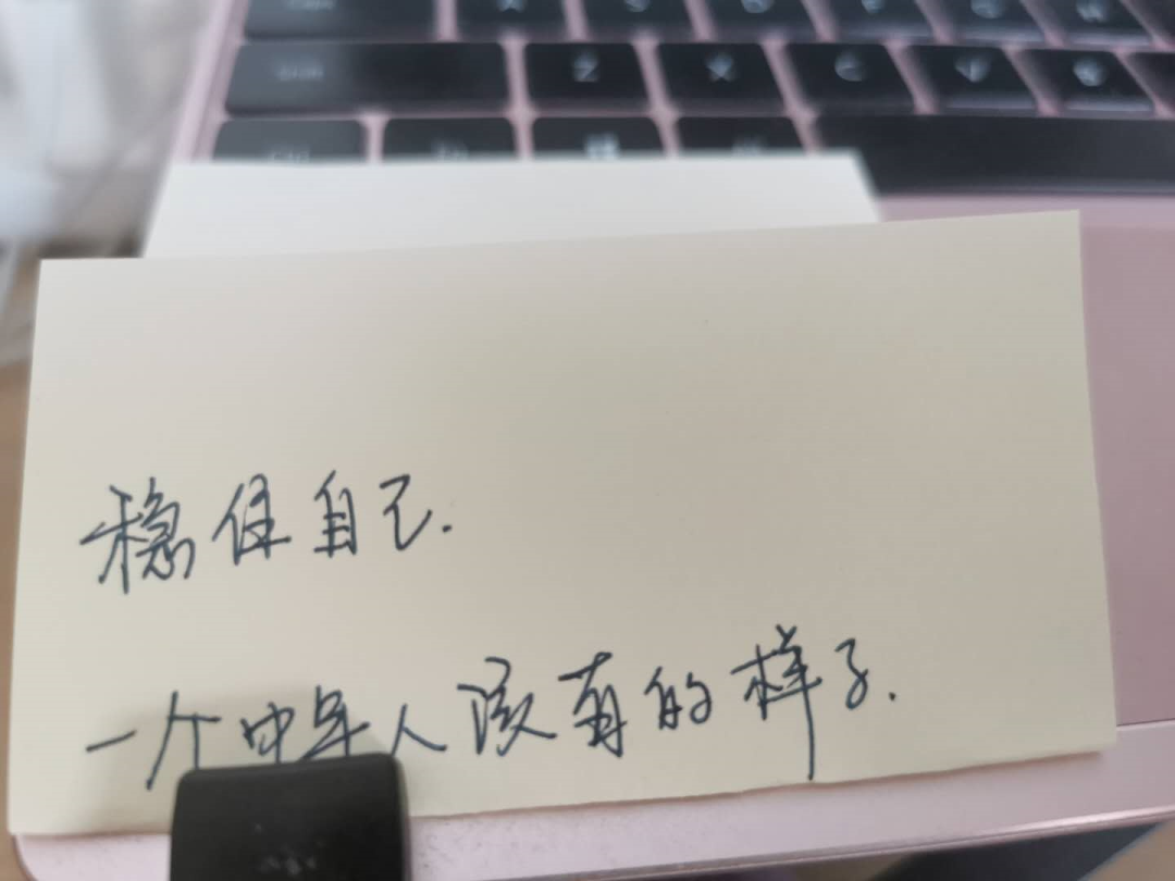 這一年來,我最大的變化是在心態(tài)上,有句話我一直貼在書桌上:穩(wěn)住自己,一個(gè)中年人該有的樣子。穩(wěn)住,指的是三方面,穩(wěn)定的身體狀態(tài)、穩(wěn)定的心理狀態(tài)、穩(wěn)定的大腦狀態(tài),穩(wěn)定說起來容易,但做起來超級(jí)難。