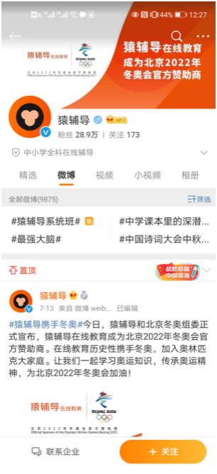 猿輔導在線教育是全國超過4億中小學生和家長首選的在線教育品牌,國內(nèi) K-12 在線教育領域首個獨角獸公司,入選“CCTV品牌強國工程”。