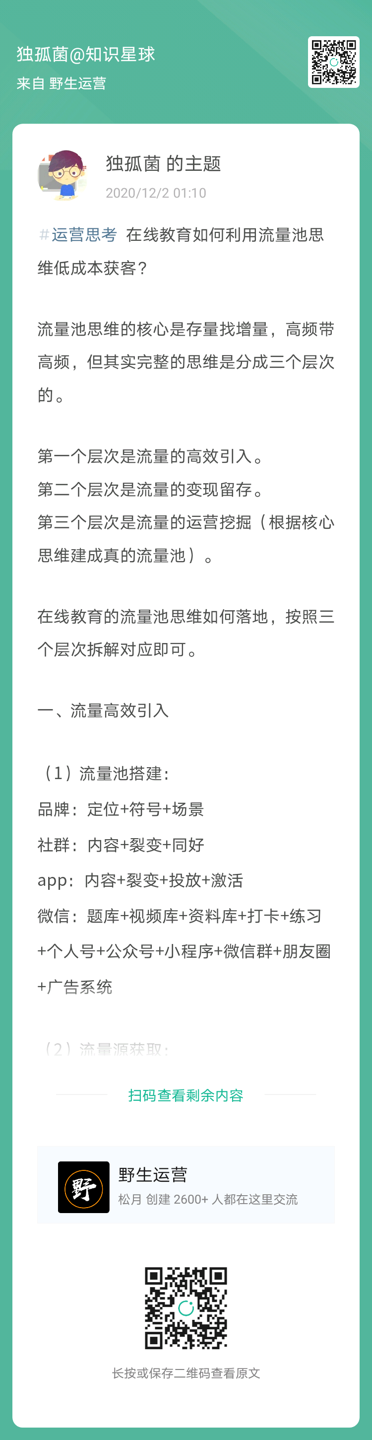 3、獨(dú)孤菌:在線教育如何利用流量池思維低成本獲客(掃碼看全文)