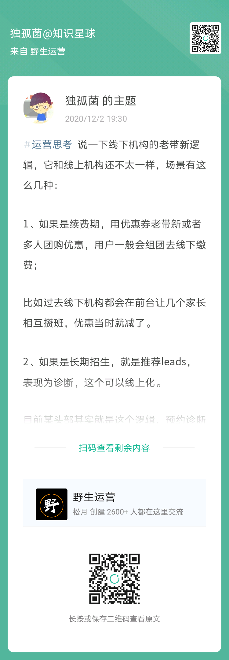 6、獨(dú)孤菌:線下機(jī)構(gòu)的老帶新邏輯(掃碼看全文)