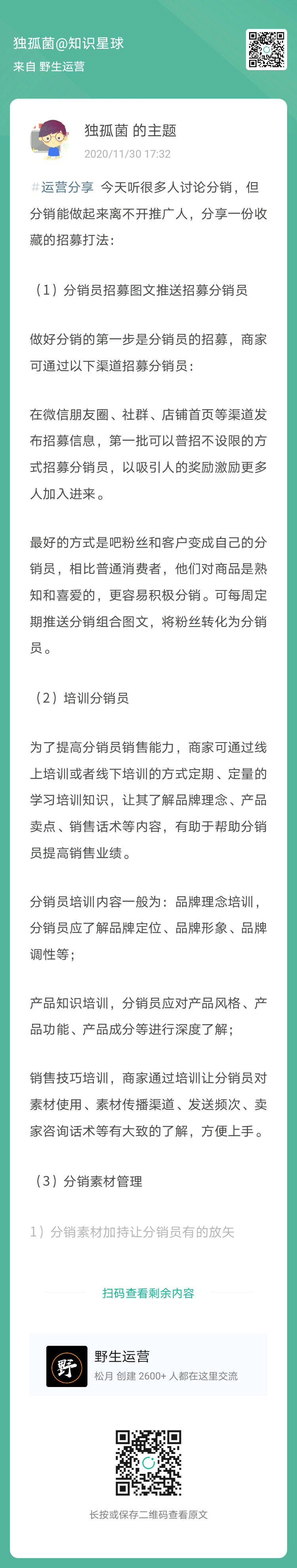 7、獨(dú)孤菌:招募分銷員的完整打法(掃碼看全文)