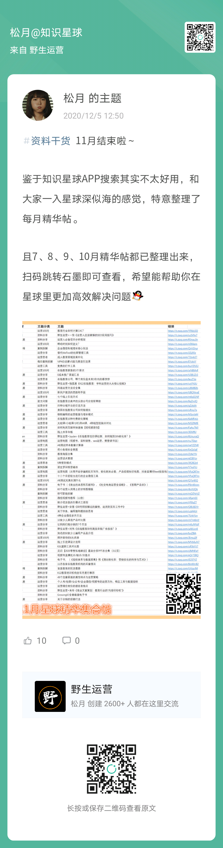 野生運(yùn)營(yíng)知識(shí)星球,每周會(huì)產(chǎn)生大量精華內(nèi)容,每周一為你整理《野生運(yùn)營(yíng):一周星球內(nèi)參》,不讓你不錯(cuò)過任何一條有價(jià)值的信息。話不多說,這就開始!