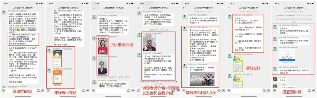 群內(nèi)引導(dǎo)修改昵稱(chēng)和發(fā)自我介紹視頻,并自己帶頭,給家長(zhǎng)以真實(shí)感,并活躍群