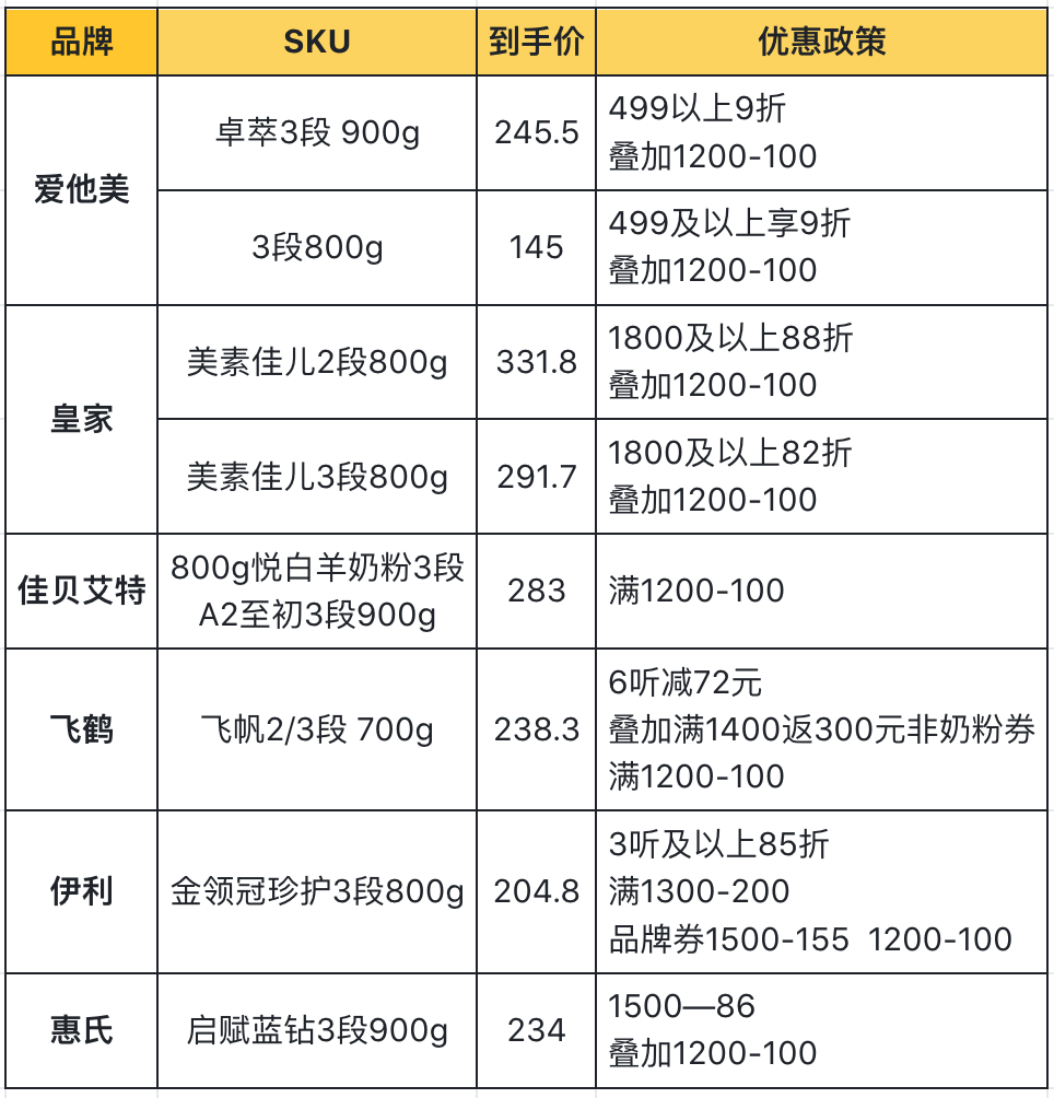 價格區(qū)間(到手價)在145-331,中高檔價位奶粉照顧不同收入人群;