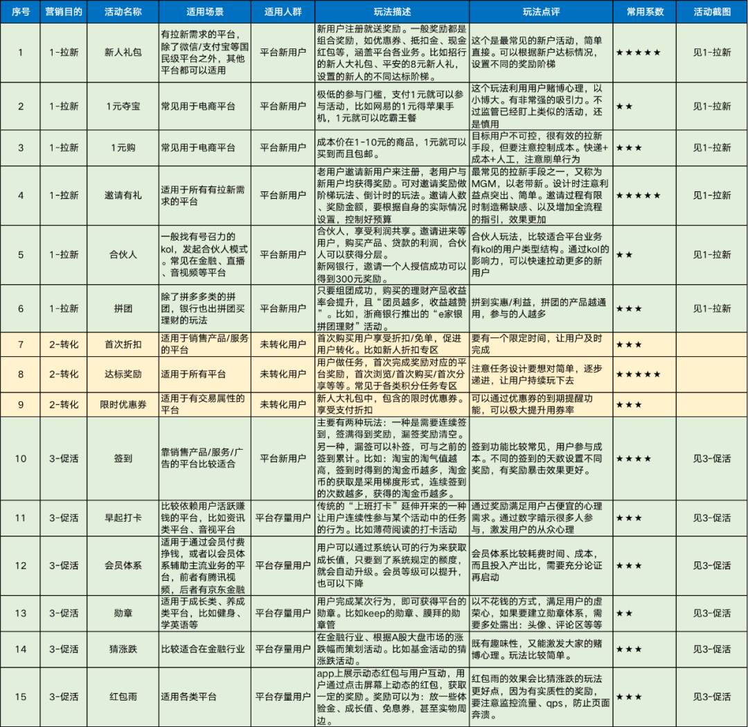 我整理了一個(gè)市場(chǎng)活動(dòng)玩法武器庫(kù)(部分截圖)。