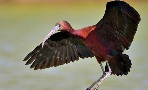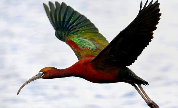 彩鹮:別名,為鸛形目、鹮科、彩鹮屬鳥類,原產(chǎn)于非洲、歐洲南部及亞洲部分地區(qū)。我國上海、浙江、福建、廣東等地有分布。野生于淺水湖泊、沼澤、河流、水塘、水淹平原、濕草地、水田、水渠等淡水水域,有時(shí)也到海邊河流入??诤推渌S?。1766年命名。頭部除面部裸出外皆被羽,體羽大部為青銅栗色,嘴長(zhǎng)而下彎,呈黑色。叫聲為帶鼻音的咕噥聲,于巢區(qū)發(fā)出咩咩及咕咕的叫聲。我國1級(jí)重點(diǎn)保護(hù)野生動(dòng)物。