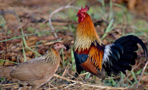 原雞:別名紅原雞_茶花雞_長尾雞_雄雞,為雞形目、雉科、原雞屬鳥類,原產(chǎn)于亞洲南亞大部分國家,包括中國、孟加拉、不丹、柬埔寨、印度、印尼、老撾、緬甸、越南等國家,是一種熱帶森林鳥類,主要棲息于海拔2000m以下的低山、丘陵和山腳平原地帶的熱帶雨林、常綠和落葉闊葉林、混交林、稀樹草坡等各類生境中,特別喜歡在灌叢間活動,有時甚至出現(xiàn)在村落附近的耕地上。1758年命名,共5個亞種。