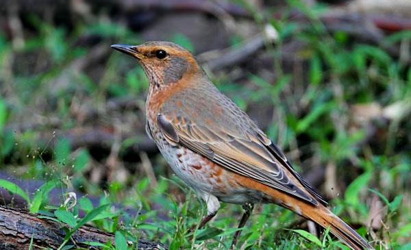 體長23-25cm,重63-81g。體背顏色以棕褐為主,下體白色,臉、胸、腰紅棕色,兩脅和臀部具紅棕色點(diǎn)斑,胸部紅棕色斑紋圍成一圈。眼上可見清晰的白色或紅棕色眉紋。起飛時(shí),尾羽展開呈紅棕色。起飛時(shí),尾羽展開時(shí)棕紅色。