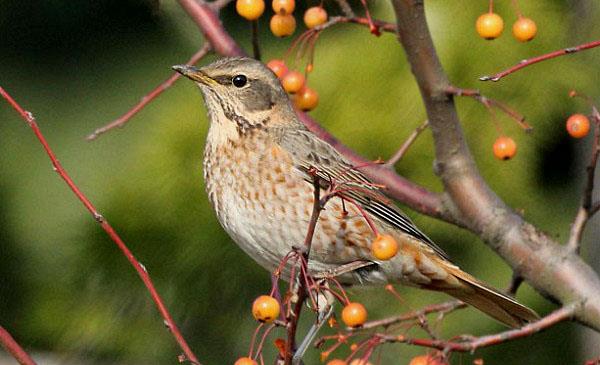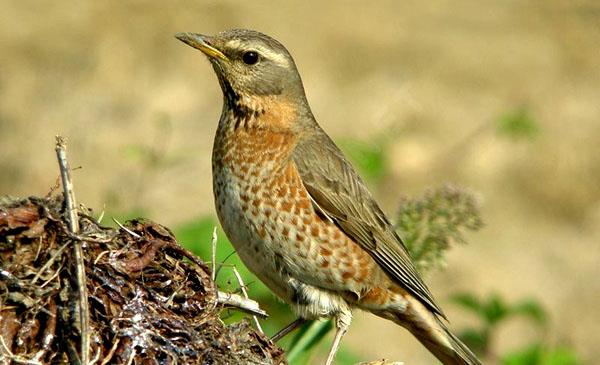 紅尾鶇:別名,為雀形目、鹟科、鶇屬鳥類,原產(chǎn)于歐洲及亞洲北部地區(qū),我國北部地區(qū)也有分布。與斑鶇非常相似,區(qū)別在于:1.紅尾鶇背部和頭部灰褐色,帶有銹色,腹白。雄鳥臉、胸、腰紅棕色,兩脅和臀部具紅棕色點(diǎn)斑,喉部常具有黑色點(diǎn)斑。雌鳥似雄鳥,但體色更淺,胸部棕色不如雄鳥密集,髭紋更清晰。2.斑鶇上體深褐色,具黑色點(diǎn)斑,兩翼和腰棕色,喉白,白色眉紋明顯。雄鳥臉下方白色,而雌鳥臉下方具黑色與白色。下體白具黑色點(diǎn)斑,在胸部和兩脅形成黑帶,翼下紅棕色。