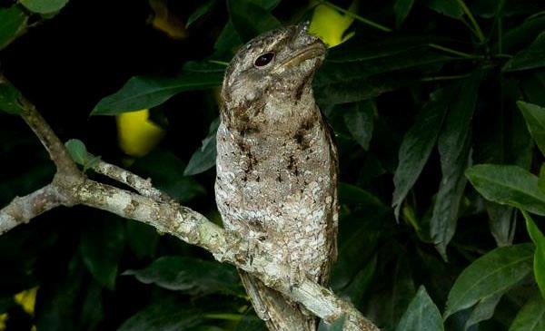 口裂極大,如同蛙口,相貌奇趣,呆萌可愛,是非常另類的奇鳥。它是自然界的擬態(tài)大師,善于偽裝,喜歡選擇老樹棲息,體色及斑紋與樹皮、苔蘚的顏色融為一體。平時(shí)紋絲不動(dòng)、眼睛微閉、嘴尖向上,看就像樹枝,很難被發(fā)現(xiàn)。