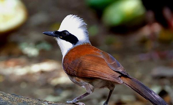 白冠噪鹛:別名,為雀形目、畫眉科、噪鹛屬鳥(niǎo)類,原產(chǎn)于亞洲東南部,包括孟加拉國(guó)、不丹、柬埔寨、中國(guó)、印度、老撾、緬甸、尼泊爾、泰國(guó)、越南,偶入新加坡。主要棲息于海拔1500m以下的低山和溝谷常綠闊葉林、雜有竹叢的樹(shù)林以及林下灌叢。1815年命名,共4個(gè)亞種。